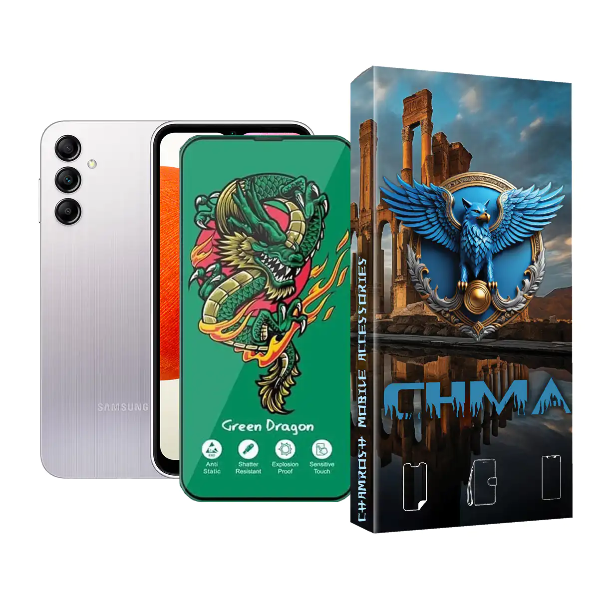 گلس و محافظ صفحه نمایش Samsung A14 اژدها سبز Horo green