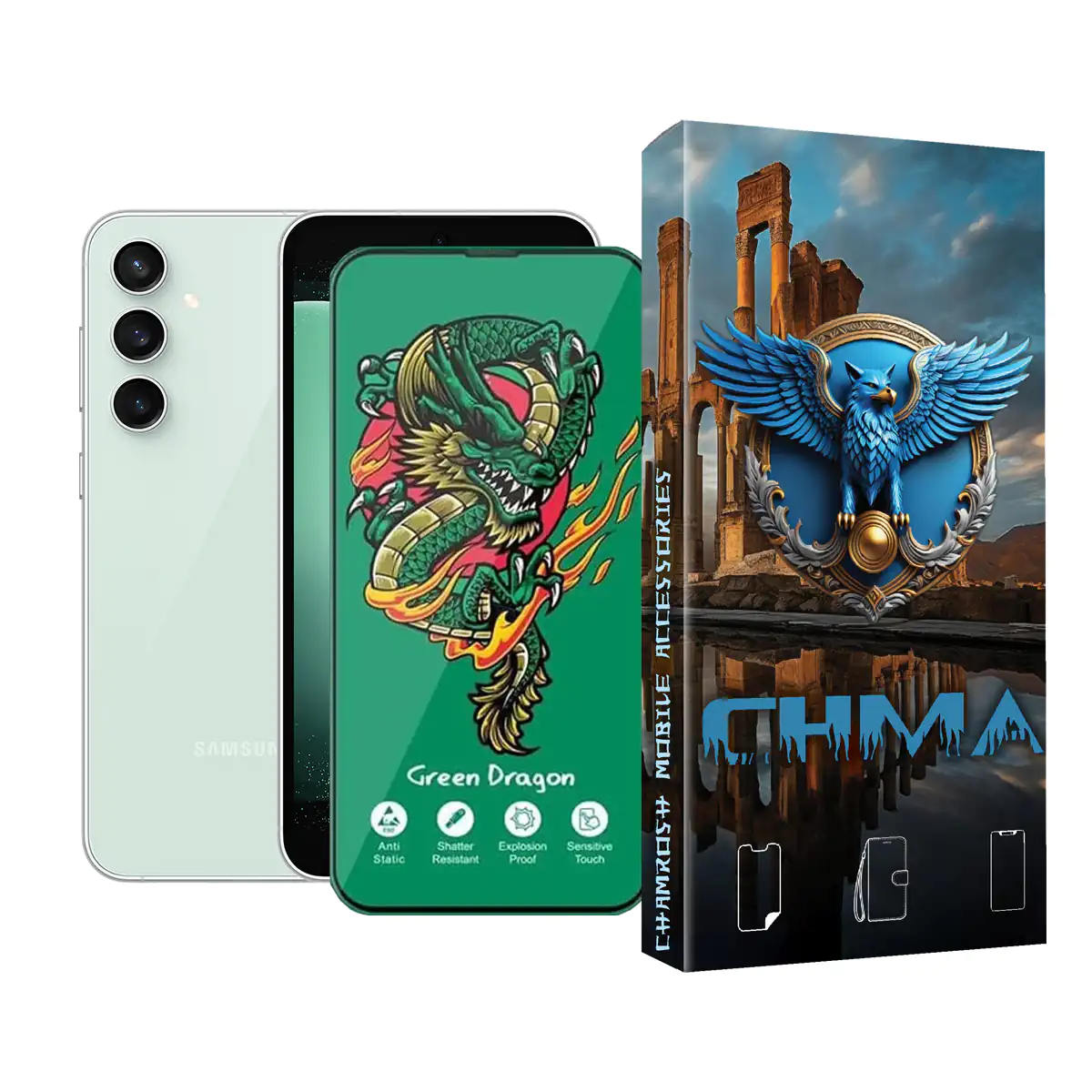 گلس و محافظ صفحه نمایش Samsung S23fe اژدها سبز Horo green
